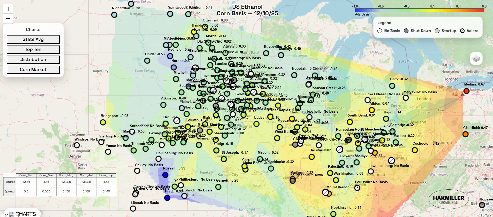 Interactive Nearby Corn Basis Map here >