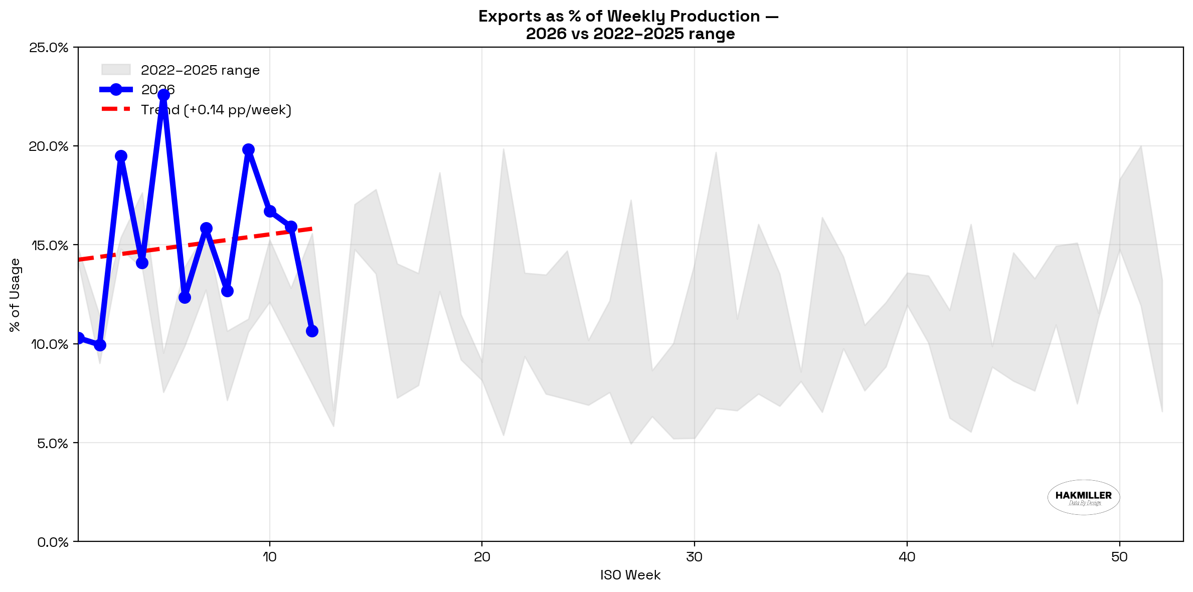 March marks the end of the seasonal slowdown for ethanol. Maintenance outages are underway, with most plants taking 5–7 days offline ahead of summer, tightening supply after February stock builds.<stocks>